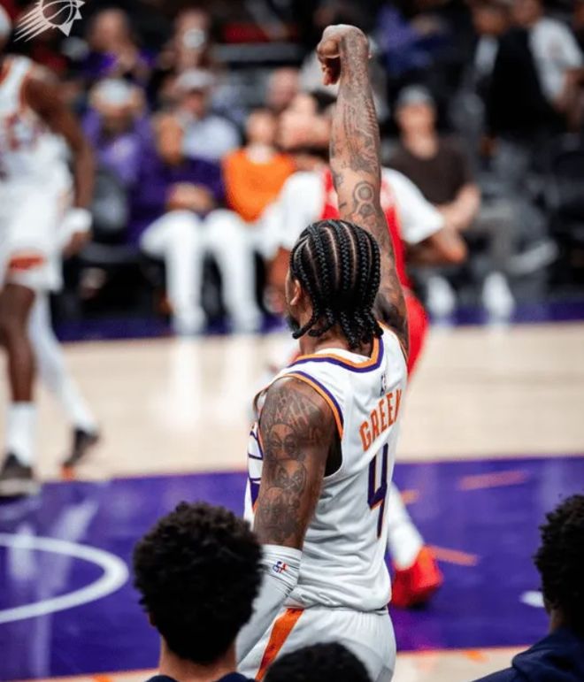 太阳队这边,杰伦-格林首秀惊艳,20投10中,三分13中6砍下29分3篮板3助攻2抢断;布克得到24分6篮板5助攻3抢断。